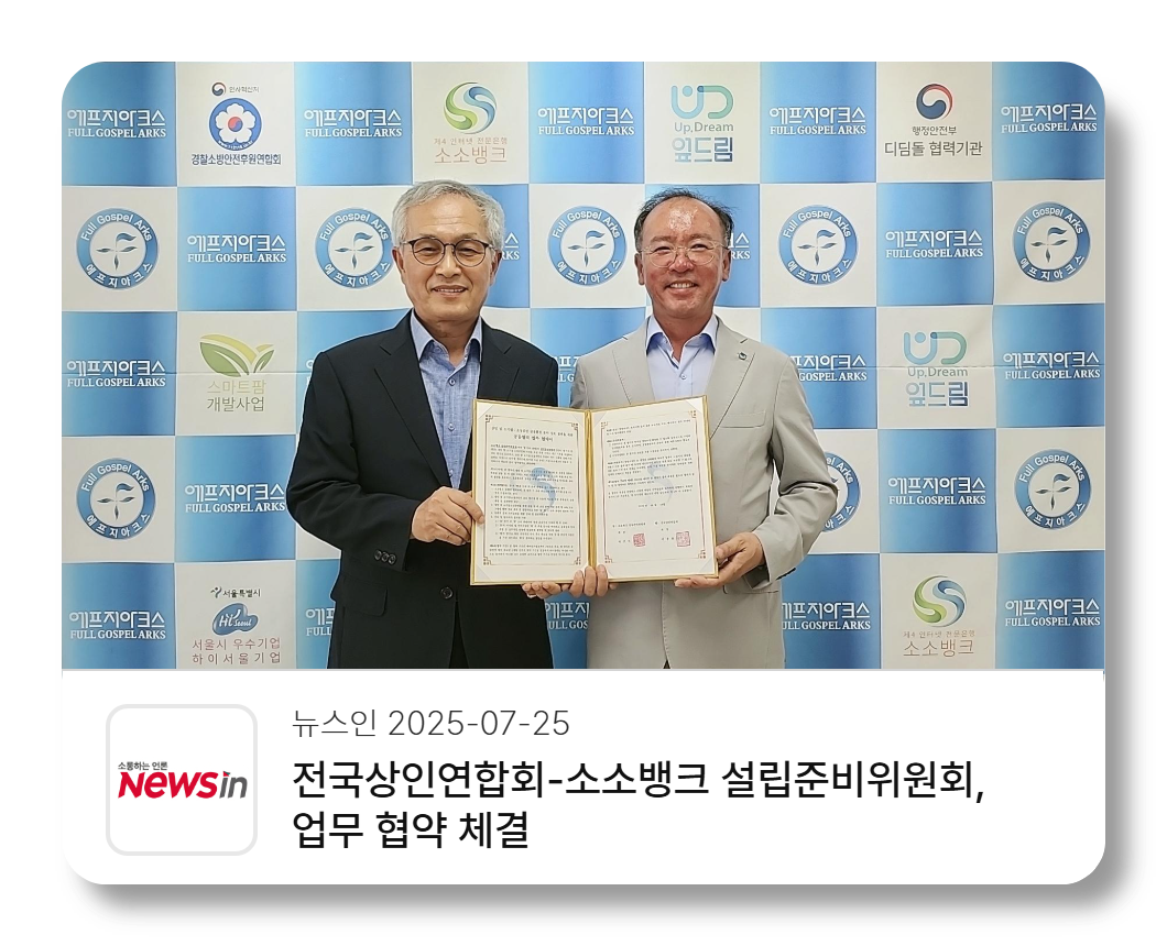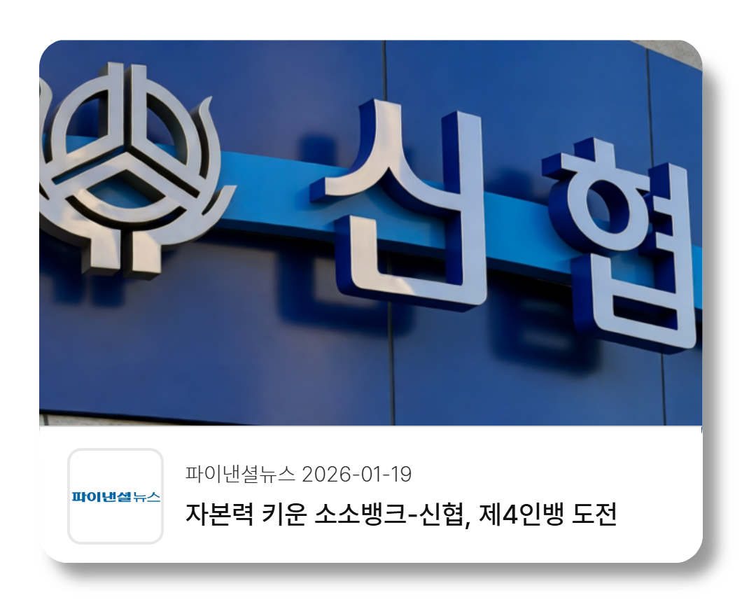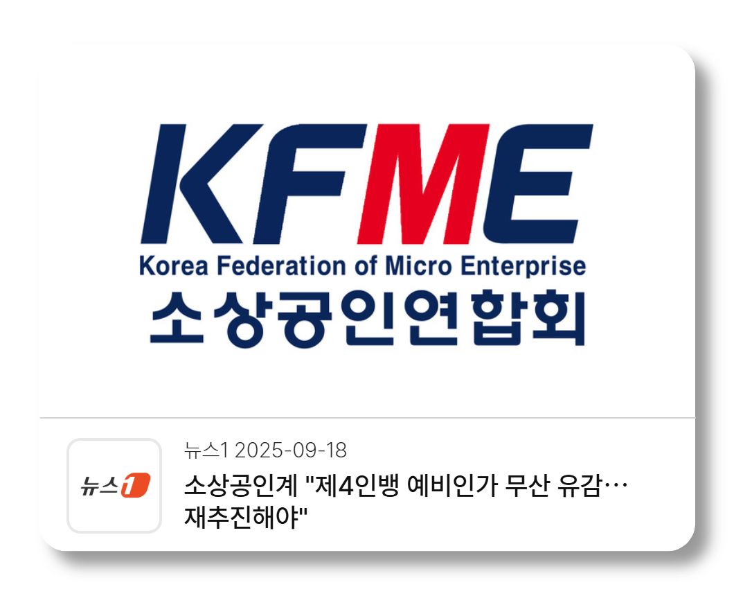 소소뱅크는 소상공인ㆍ소기업이 주인되는 인터넷 전문은행입니다. MOU 회원수 약 만명 MOU 회원수 약 만명 현재 자본금 납입의향 금액 합계 위 금액은 순수하게 소상공인ㆍ소기업에서만 받은 금액 합산입니다. 자본금 납입 의향서 접수 완료 되었습니다 보도자료 1코노미뉴스 2025-10-24 소소뱅크, 제4인뱅 불씨 살릴까...시중은행 접촉 등 재정비 박차 시사저널e. 2025-09-29 금융당국 조직개편 백지화에···제4인터넷은행 재추진 기대감 파이낸셜 2025-09-26 이테크시스템, '제4 인터넷전문은행 재추진'소소뱅크 컨소시엄에 대주주 운영사로 합류 MTN 뉴스 2025-09-19 제4 인터넷전문은행 불허…소소뱅크"멈추지 않고 다시 도전" 뉴스원 2025-07-23 '소상공인 특화은행' 강조한 李…새 정권 찬스?'소소뱅크' 다시 뛴다 연합뉴스 2025-07-01 소상공인연합회 "제4인뱅,소상공인 중심으로 설립돼야" 블로터 2025-03-27 제4인뱅 '4파전'…예비인가 결과는6월 발표"안정적 자본 확보" SBS Biz 2024-10-10 김병환 "인뱅 '신규 인가' 진행…공매도 시스템, 원활 구축" 뉴스원 2024-07-22 김병환 금융위원장 ‘하반기 중제4인터넷은행 선정 절차 진행’ 파이낸셜 2024-07-19 ‘김한길 금융통합위원장 소상공인 지원’제4인터넷은행 설립 제안 SBS Biz 2024-05-13 국민통합위, 尹에 소상공인 인터넷 은행·폐교부지기숙사 설립 제안 한국금융 2024-03-04 소소뱅크, 소상공인 대출 최대 400조 흡수 목표 머니투데이 2025-10-20 이억원 "새로운 형태 은행 필요성 인정…시장상황 따라 검토" 뉴스웨이 2025-09-26 제4인뱅 재추진 소소뱅크,이테크시스템 수혈로 자본 경쟁력 강화 지디넷코리아 2025-09-26 '구원투수' 이테크시스템 등판…소소뱅크,제4인뱅 탈락 9일 만에 재도전 뉴스원 2025-09-18 소상공인계 "제4인뱅 예비인가 무산 유감…재추진해야" 파이낸스투데이 2025-07-20 전국상인연합회–소소뱅크,소상공인 맞춤형 금융 위해 손잡다 한국경제 2025-03-27 소소뱅크에 경남은행 합류…제4 인뱅'혼전'"안정적 자본 확보" 스마트투데이 2024-10-15 소소뱅크 설립준비위,경기도상인연합회와 맞손 한국경제 2024-09-13 "제4 인뱅 기준, 11월까지 마련" 시사오늘 2024-09-06 “인뱅도 은행”…전통금융 참여없는소소뱅크 제4인뱅 경쟁력 있을까 매일경제 2024-06-27 NH 농협은행 '소소뱅크에지분 투자 방식 참여 가능성 높다.' 노컷뉴스 2024-04-03 소소뱅크 컨소시엄,ICT 기업11개사 참여 확정 아시아타임즈 2024-02-24 [아하인터뷰] "소상공인‧소기업이주인인 은행될 것 " MOU 협약단체들 ㆍ소상공인연합회ㆍ전국 상인연합회ㆍ서울시 상점가·전통시장 연합회ㆍ강원도 소상공인연합회ㆍ경상남도 소상공인연합회ㆍ경상북도 소상공인연합회ㆍ충청남도 소상공인연합회ㆍ부산광역시 소상공인연합회ㆍ대구광역시 소상공인연합회ㆍ전라남도 소상공인연합회ㆍ충청북도 소상공인연합회ㆍ전라북도 소상공인연합회ㆍ제주특별자치도 소상공인연합회ㆍ경기도 소상공인연합회ㆍ서울시 소기업소상공인연합회 ㆍ경기도 소기업소상공인연합회ㆍ한국소공인협회ㆍ자영업소상공인중앙회ㆍ세계한인여성회장협의회ㆍ한국장애인단체총연합회ㆍ한국지체장애인협회ㆍ퍼시픽코리아ㆍ전국패션소상공인연합회ㆍ울산 현대기아차 협력사협의회ㆍ신원리조트ㆍ대한미용사회 전남동부지회ㆍ직능단체연합ㆍ재난극복범국민협의회ㆍ한국여성문화생활회ㆍCBS M&C ㆍ서울경제연합ㆍ대한민국여경재향경우회ㆍ사회적협동조합연합회 중앙회ㆍ청년창업가협회ㆍ한국불교 태고종 신도회ㆍ한국스마트휴먼테크협회ㆍ전국직장인다문화축구협회ㆍ한국중소벤처디지털혁신협회ㆍ전국동포총연합회ㆍ한국경영기술지도사회ㆍ천하제일 광개토부대 육군 제1군단ㆍ한국원가관리협회ㆍ한국종합경제 연구원 소소뱅크는